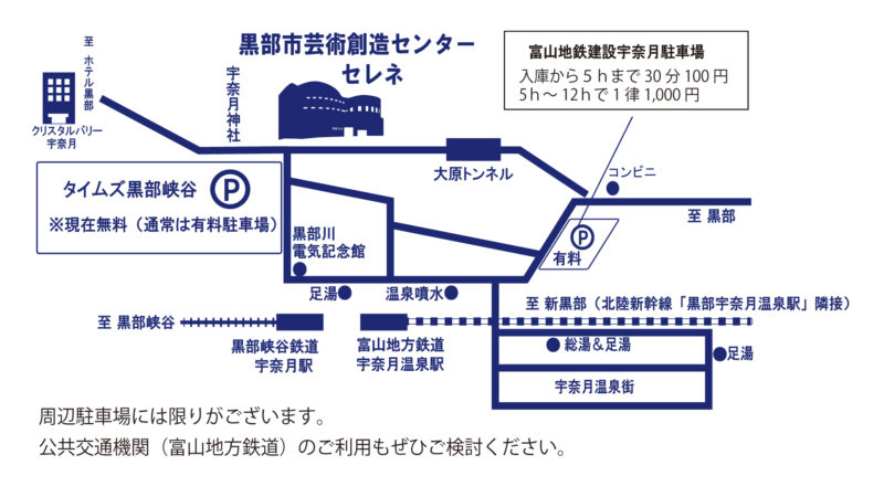 富山地方鉄道「宇奈月温泉駅」より徒歩約5分です。